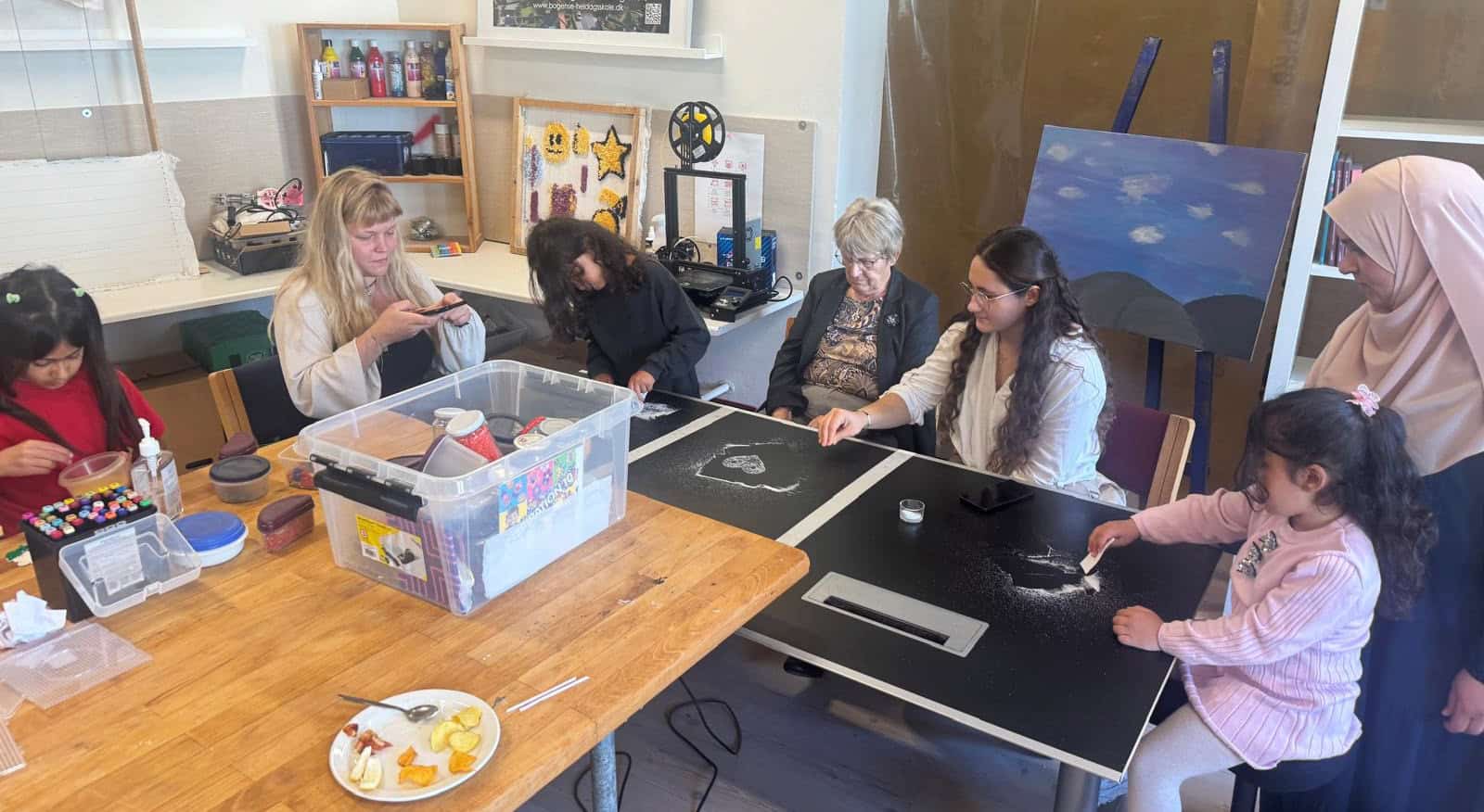 Mange venner og bekendte kiggede forbi – så vores nye informationsfilm og nød en hyggelig eftermiddag med kaffe, te og kage. De unge havde forberedt kreative aktiviteter som tegning, perleplader og sjov med salt – og der var masser af plads til både hygge og gode snakke.